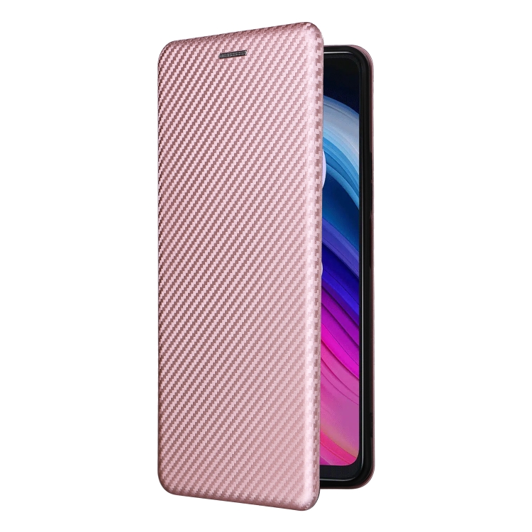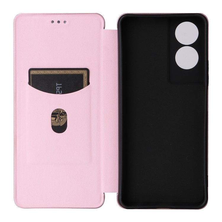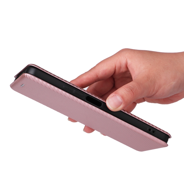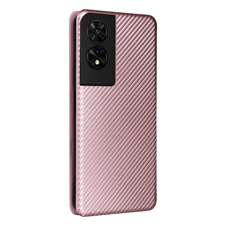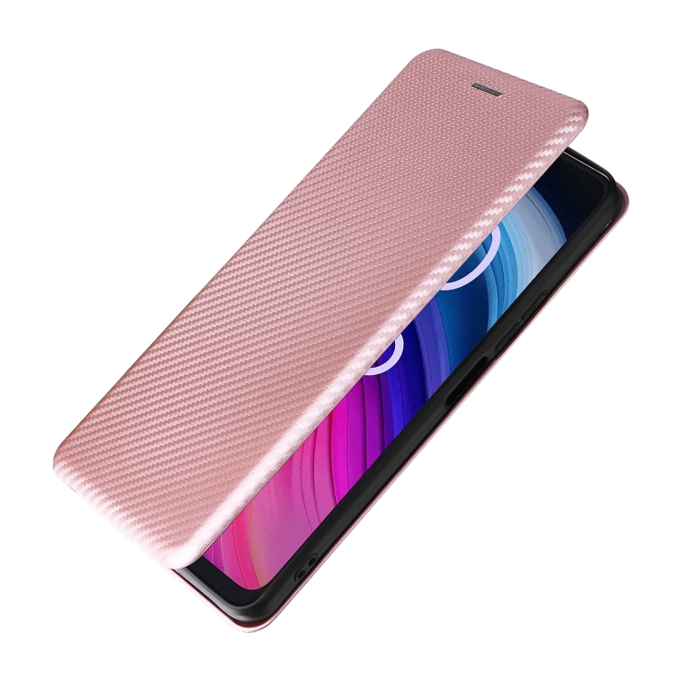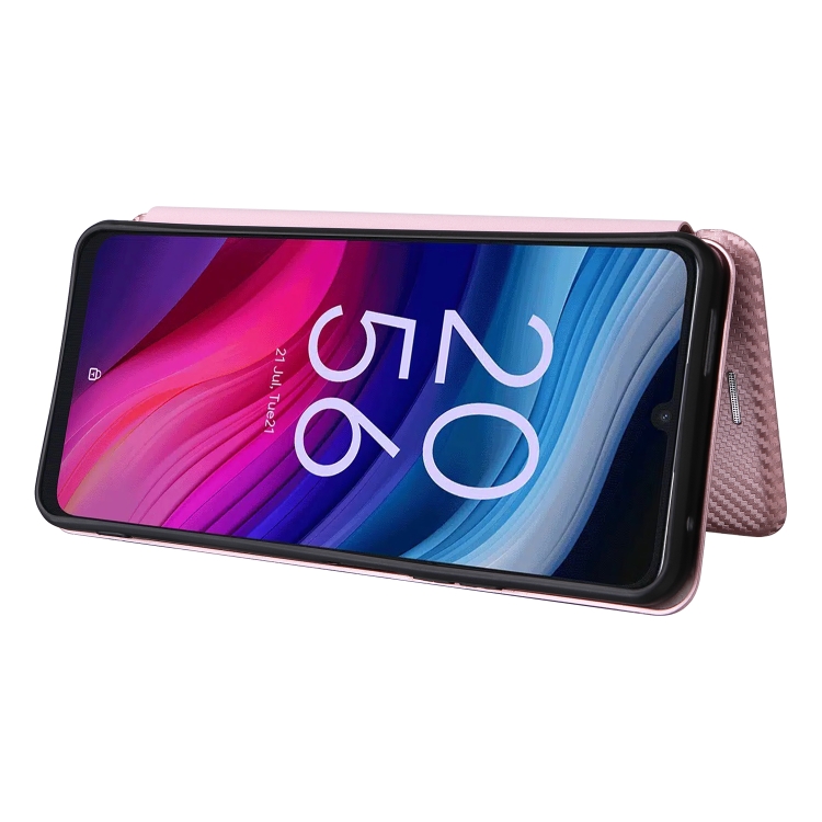 Funda de Teléfono para TCL 505 Cuero con Tapa Textura Fibra de Carbono (Rosa)