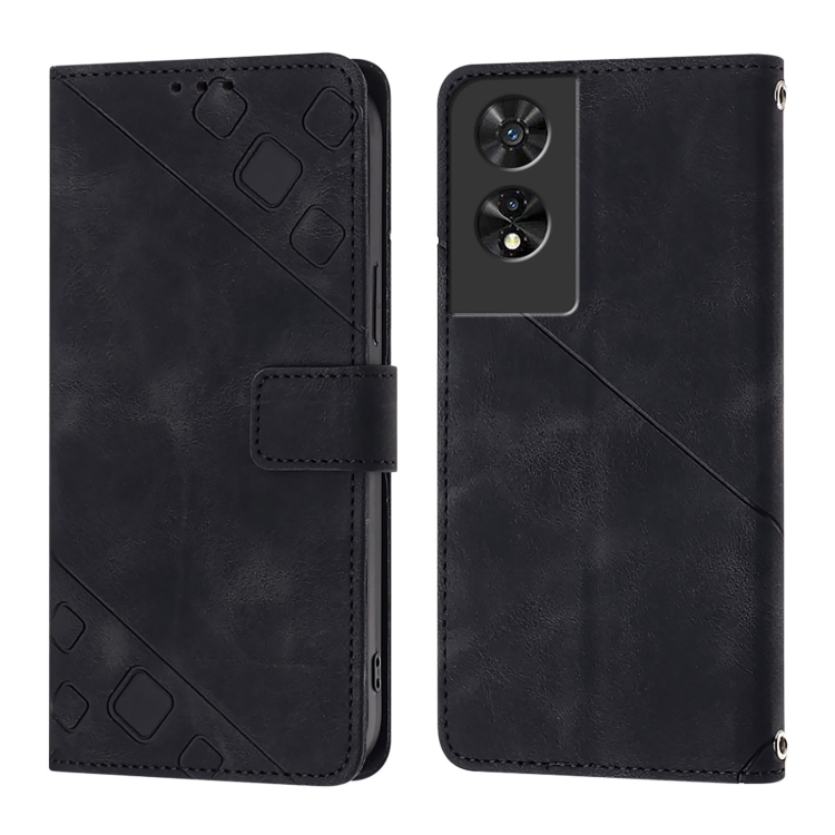 Funda de Cuero para TCL 505 Skin Feel en Relieve (Negro)