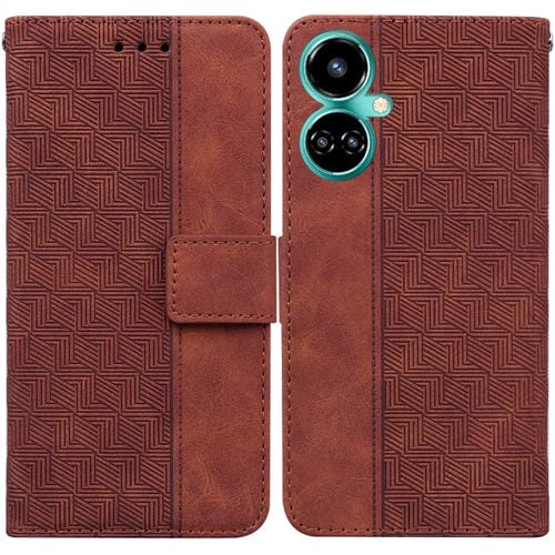 Funda de Cuero para Tecno Camon 19 con Relieve Geométrico (Marrón)