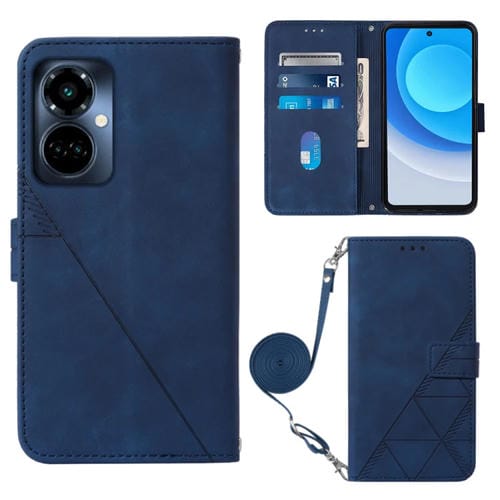 Funda de Cuero para Tecno Camon 19 Pro 5G Crossbody 3D con Tapa En Relieve (Azul)