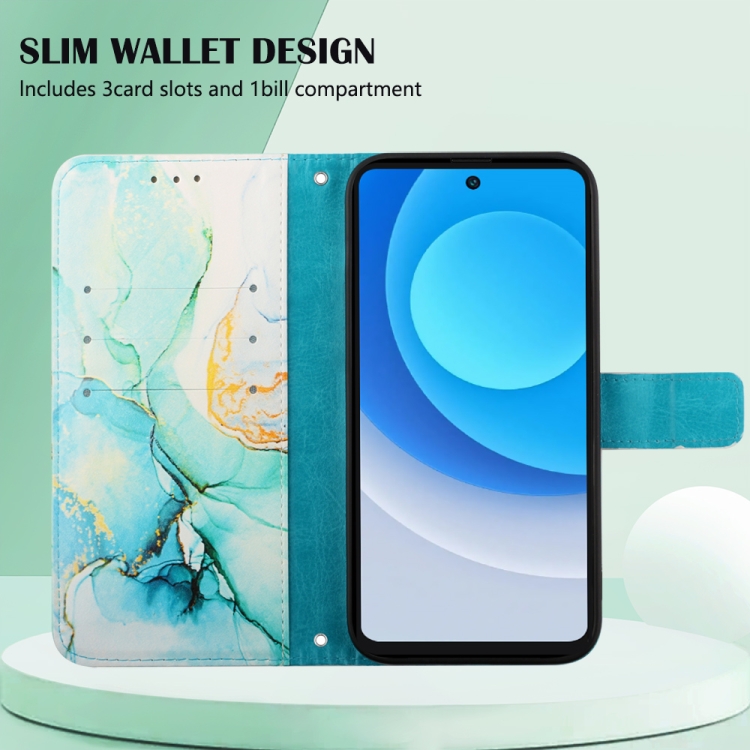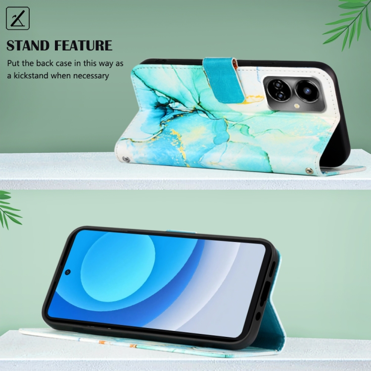 Funda para Tecno Camon 19 Pt003 con Tapa de Cuero y Patrón de Mármol (Verde)