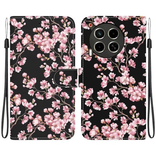 Funda de Cuero para Tecno Camon 30 4G / 30 5G Cl6 Cl7 con Dibujo y Textura de Cristal (Plum Bossom)
