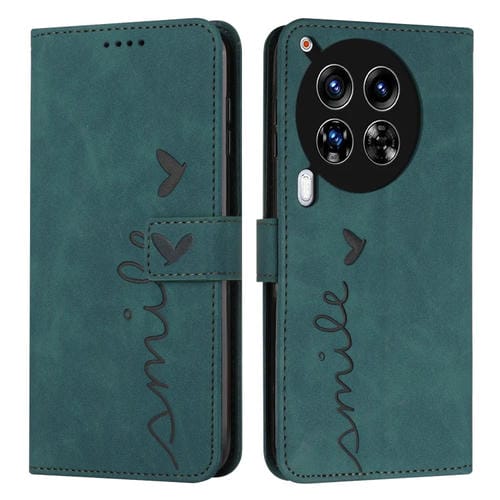Funda para Tecno Camon 30 4G / 5G Skin Feel Heart Cuero En Relieve con Cordón Largo (Verde)