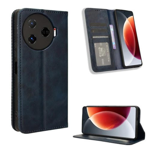 Funda para Tecno Camon 30 Pro 5G de Cuero con Textura Retro y Hebilla Magnética (Azul)