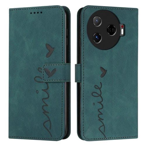 Funda para Tecno Camon 30 Pro 5G Skin Feel Heart de Cuero En Relieve con Cordón Largo (Verde)