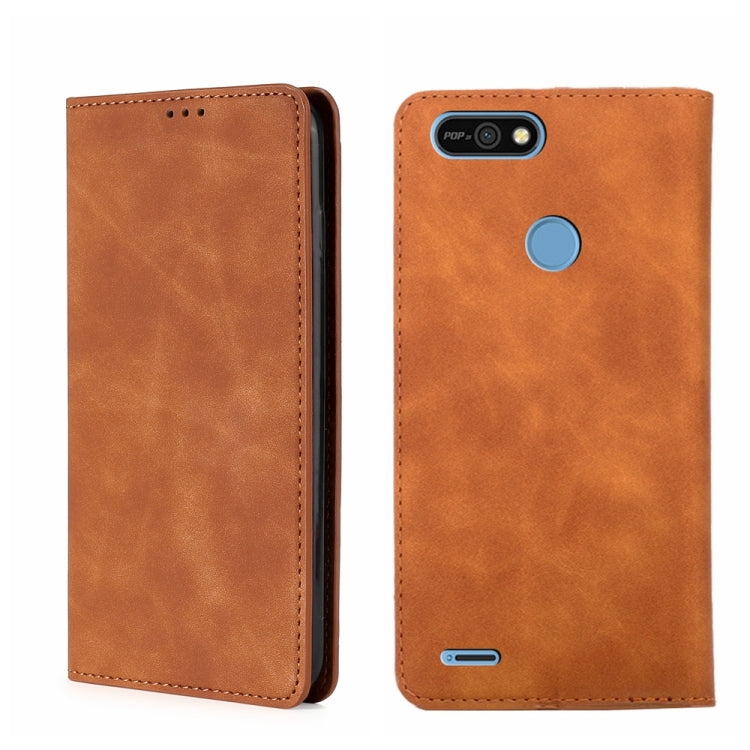 Funda de Cuero Horizontal con Cierre Magnético para Tecno Pop 2/Pop 2F/Pop 2 Pro/Pop 2 Power/Itel P13 (Marrón Claro)