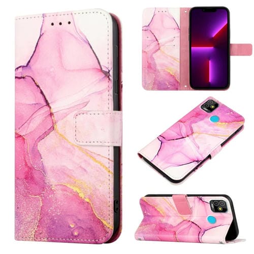 Funda de Cuero Pliegue para Tecno Pop 5 Pt003 Patrón Mármol (Rosa Purple Gold)