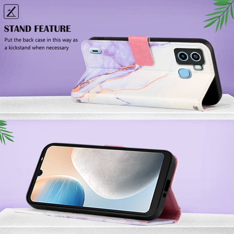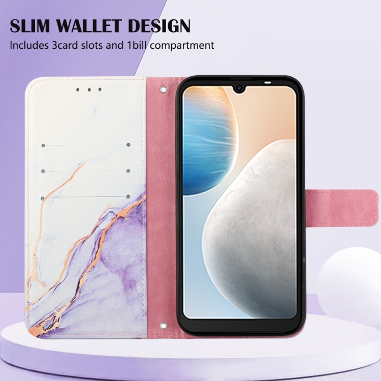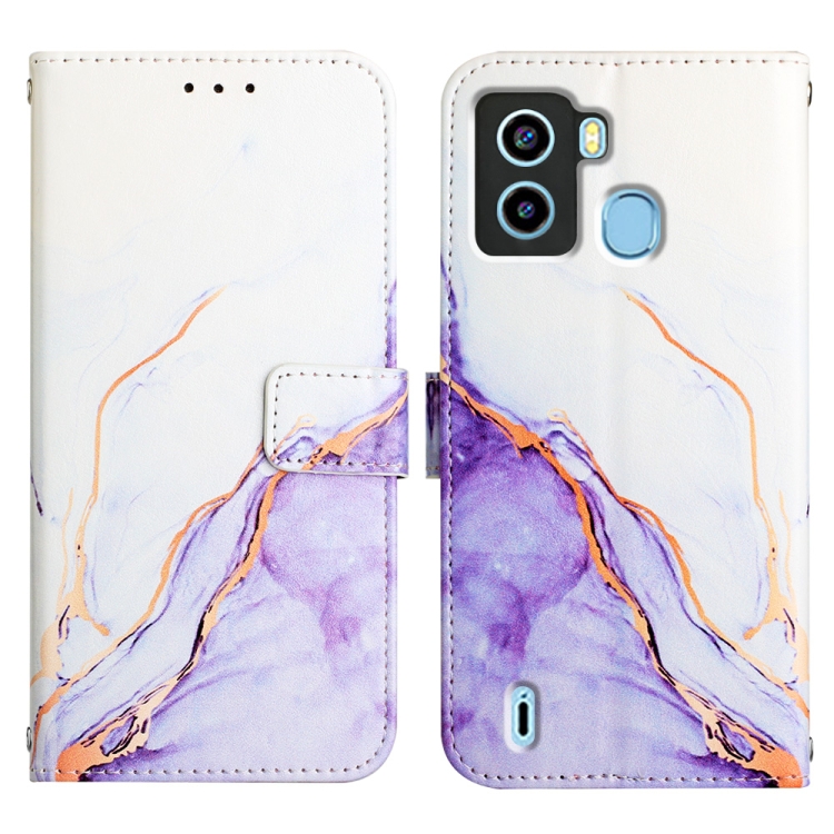 Funda de Cuero con Tapa para Tecno Pop 6 Pt003 Patrón Mármol (Blanco Púrpura)