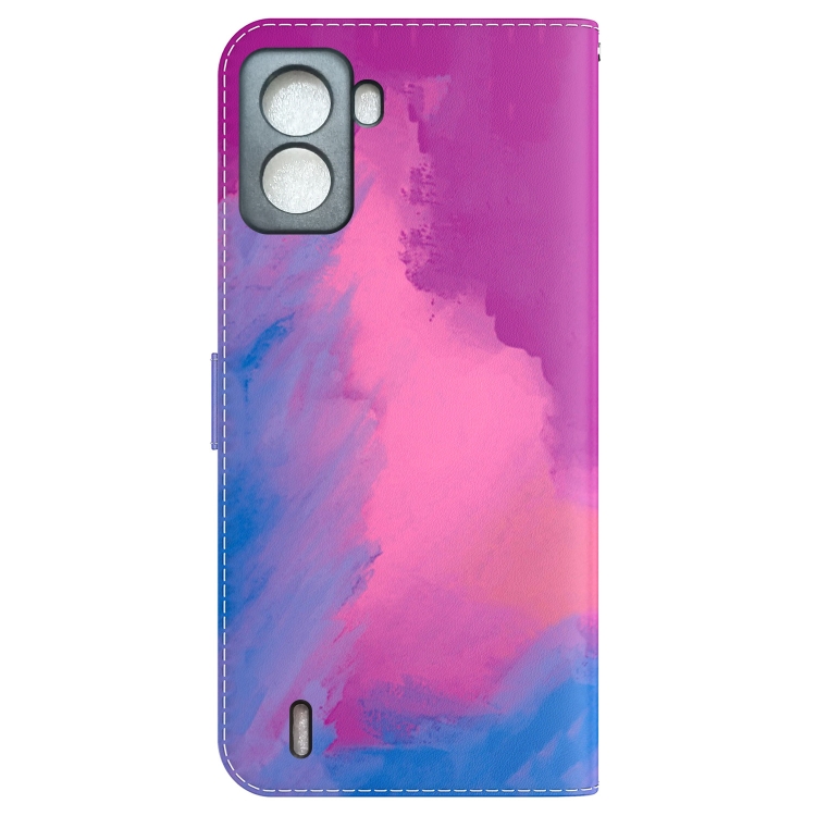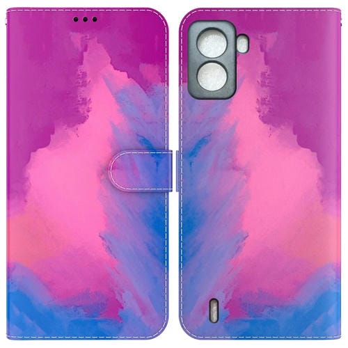 Funda de Cuero con Tapa Horizontal para Tecno Pop 6 Patrón Acuarela sin Huellas (Púrpura Rojo)