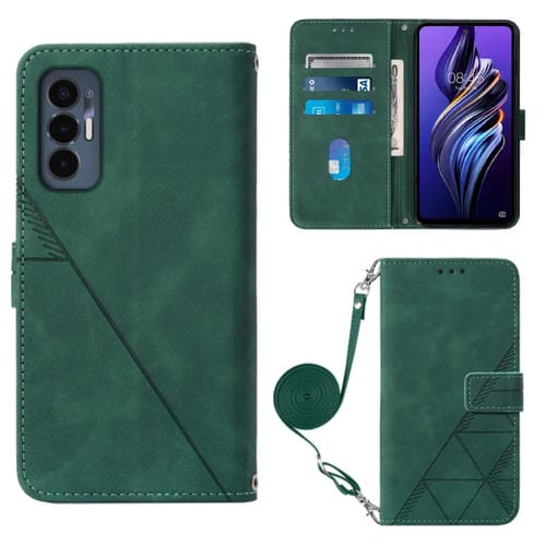 Funda de Cuero Flip Crossbody 3D para Tecno Pova 3 Le7 (Verde Oscuro)