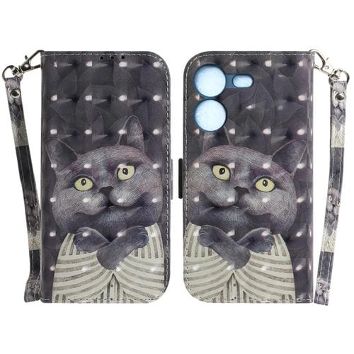 Funda de Cuero para Tecno Pova 5 3D con Tapa Horizontal (Hug Cat)