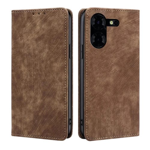 Funda de Cuero Magnética para Tecno Pova 5 Pro con Protección RFID y Cepillo Antirrobo (Marrón)