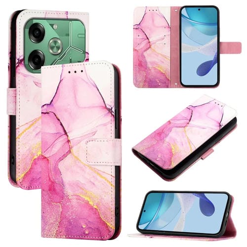 Funda de Cuero para Tecno Pova 6 4G Pt003 con Tapa y Patrón de Mármol (Rosa, Morado y Dorado)