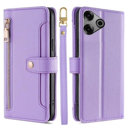 Funda de Cuero para Tecno Pova 6 Pro 5G con Billetera y Cremallera (Púrpura)