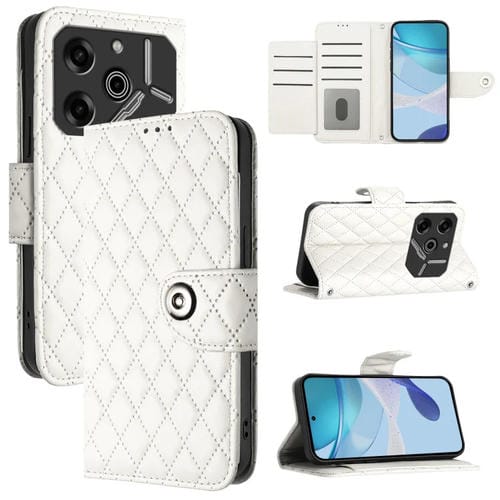 Funda para Tecno Pova 6 Pro y Pova 6 5G con Tapa de Cuero Textura Rómbica y Cordón (Blanco)