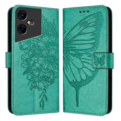Funda de Cuero para Tecno Pova Neo 3 con Mariposa en Relieve (Verde)