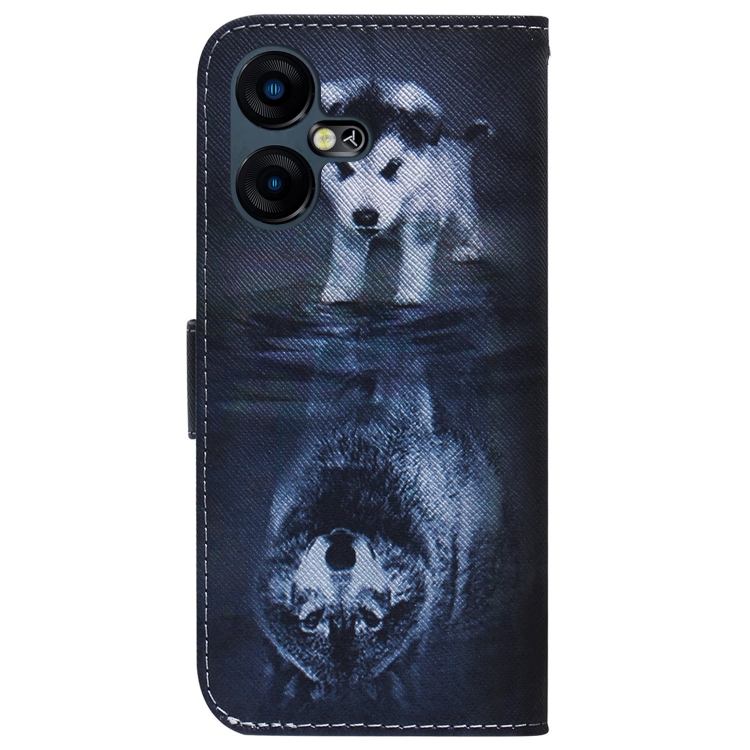 Funda de Cuero para Tecno Pova Neo 3 con Tapa y Dibujo Coloreado (Lobo y Perro)