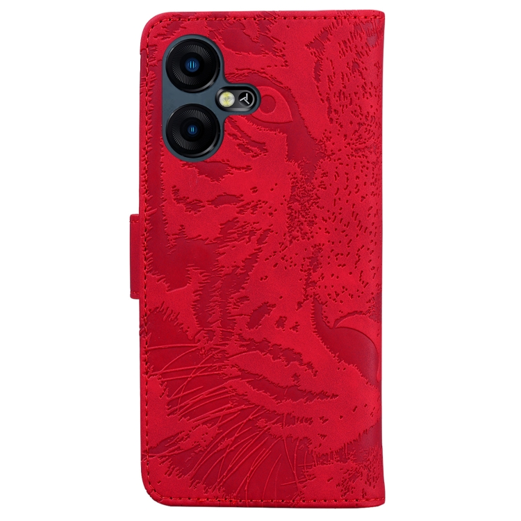 Funda de Cuero Flip para Tecno Pova Neo 3 con Patrón Tiger Embossing (Rojo)