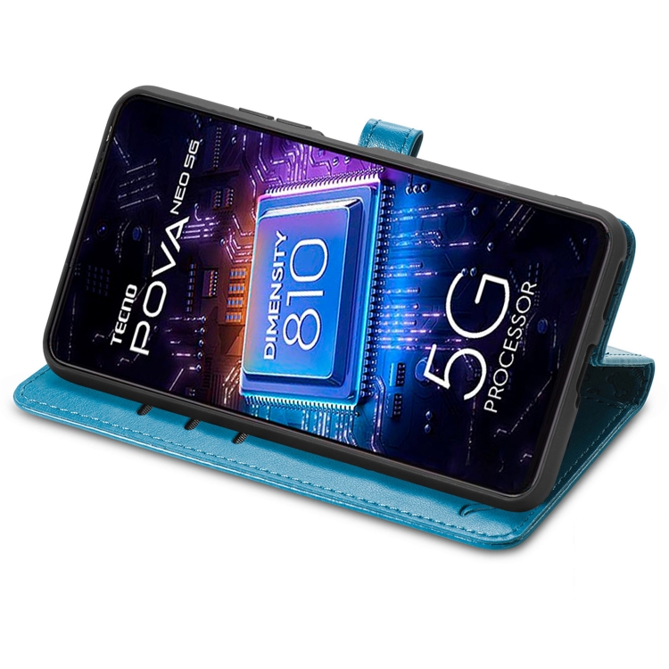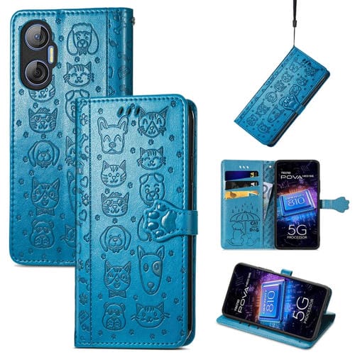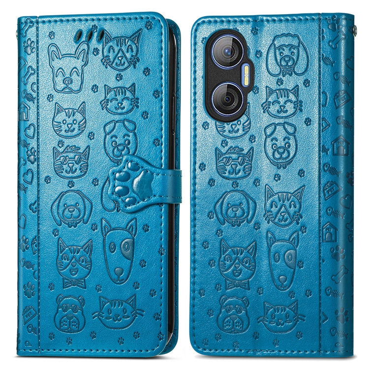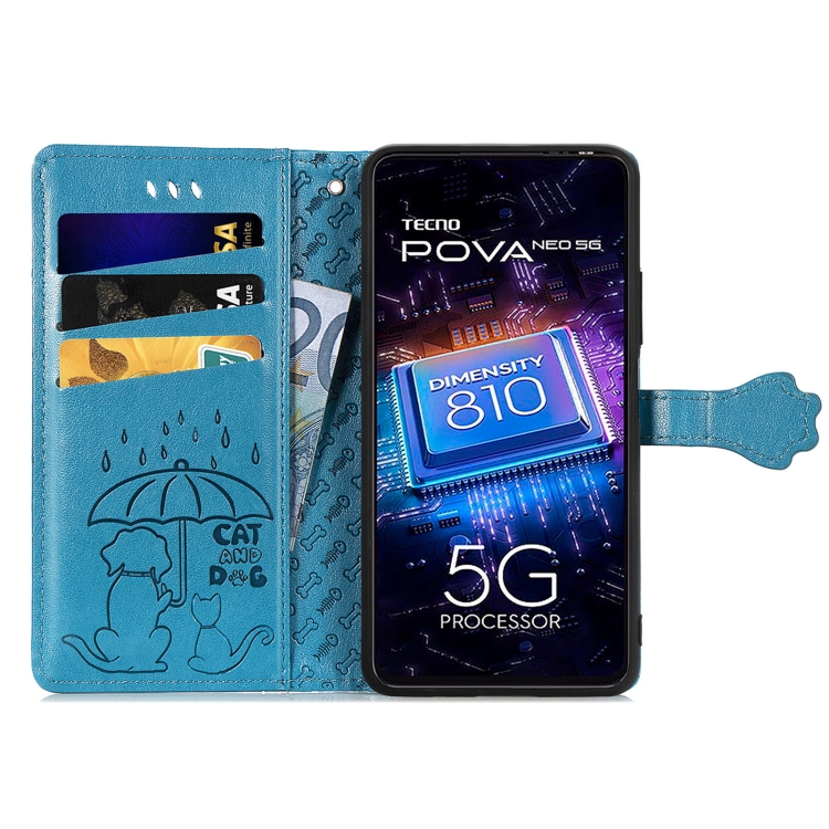 Funda de Cuero para Tecno Pova Neo 5G Cat And Dog en Relieve (Azul)