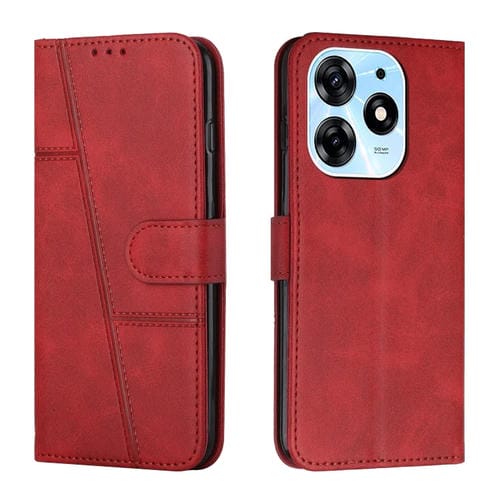 Funda de Cuero para Tecno Spark 10 Pro con Stitching y Hebilla (Rojo)
