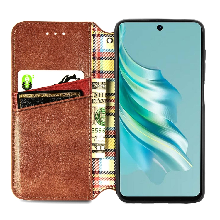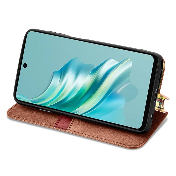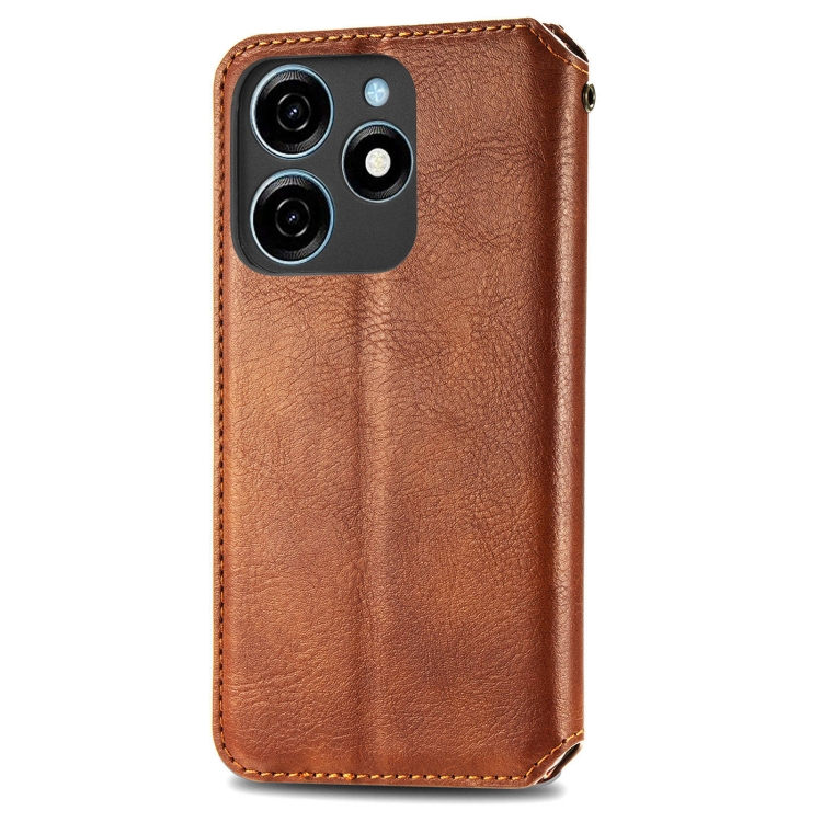 Funda de Cuero Magnético para Tecno Spark 20 4G Cubic Grid (Marrón)