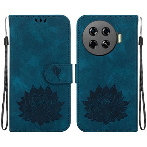 Funda de Cuero para Tecno Spark 20 Pro+ con Relieve de Loto (Azul Oscuro)