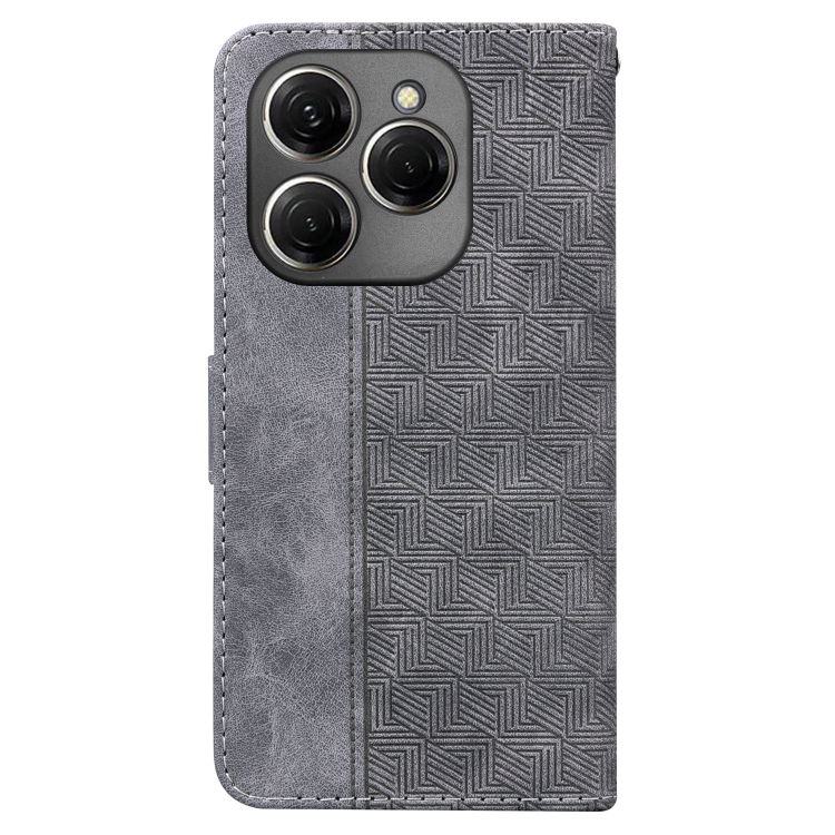 Funda de Cuero para Tecno Spark 20 Pro con Relieve Geométrico (Gris)