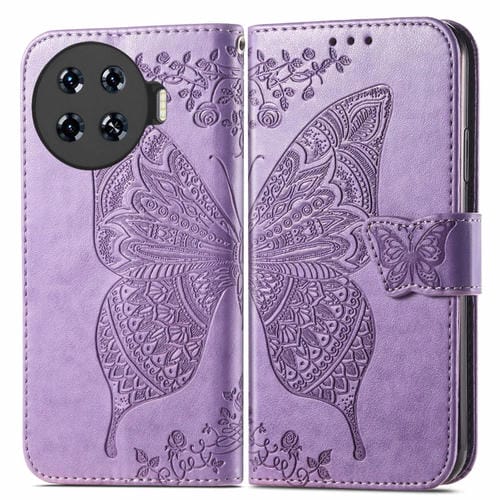 Funda para Tecno Spark 20 Pro de Cuero con Relieve Flor y Mariposa (Púrpura Claro)