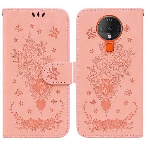 Funda para Tecno Spark 6 de Cuero con Relieve de Mariposa (Rosa)