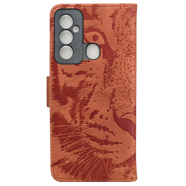 Funda de Cuero para Tecno Spark 6 Go con Tapa Horizontal y Patrón Tiger Embossing (Marrón)