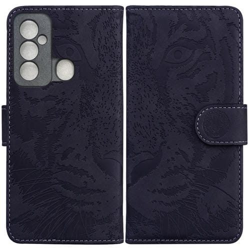 Funda de Cuero para Tecno Spark 6 Go con Tapa Horizontal Tiger Embossing (Negro)