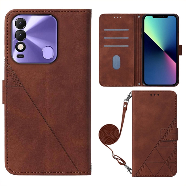 Funda de Cuero Crossbody 3D para Tecno Spark 8 Kg6 (Marrón)