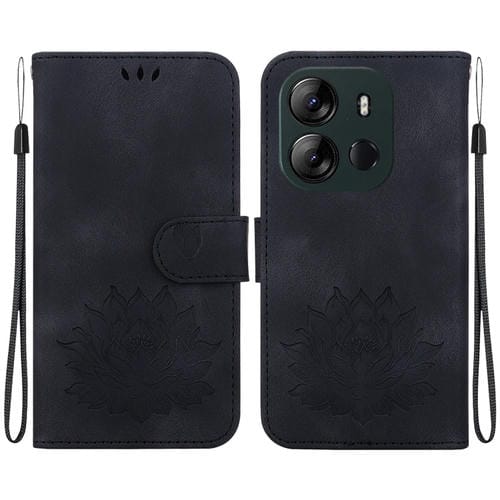 Funda de Cuero para Tecno Spark Go 2023 y Pop 7 Pro con Relieve de Loto (Negro)