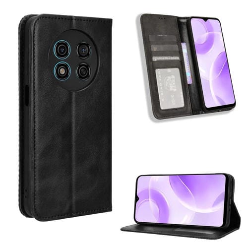 Funda para Ulefone Note 15 Cuero Textura Retro con Hebilla Magnética (Negro)