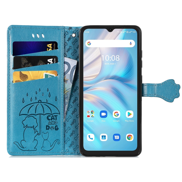 Funda para Umidigi A13S Cute Cat And Dog Estuche de Cuero En Relieve para Teléfono (Azul)