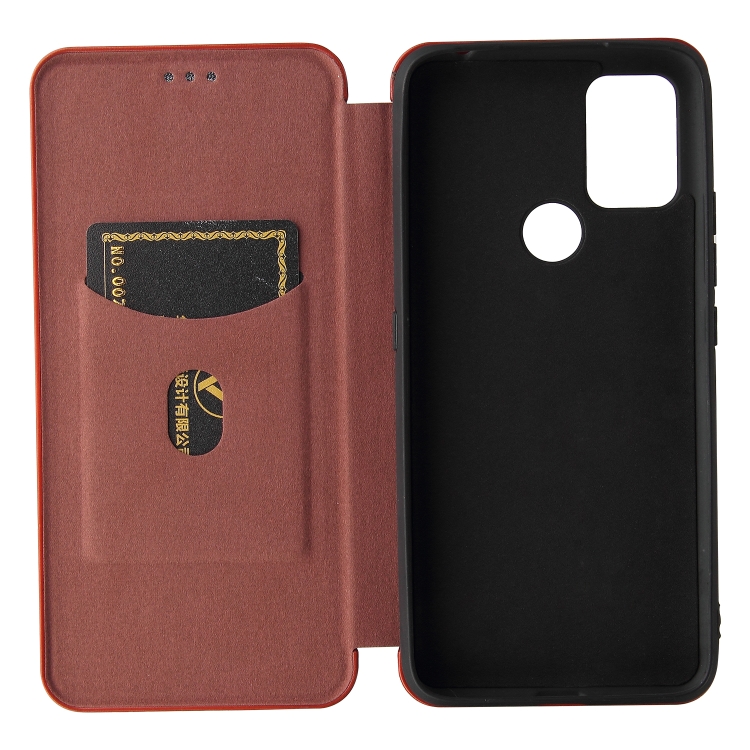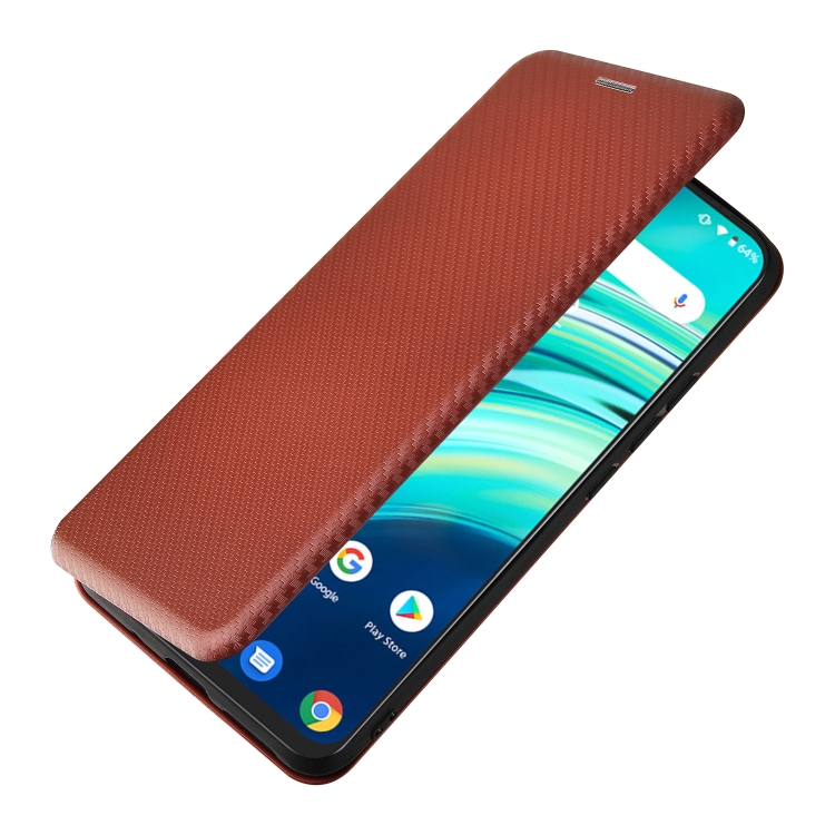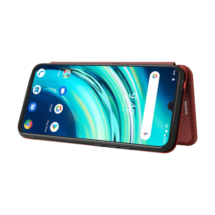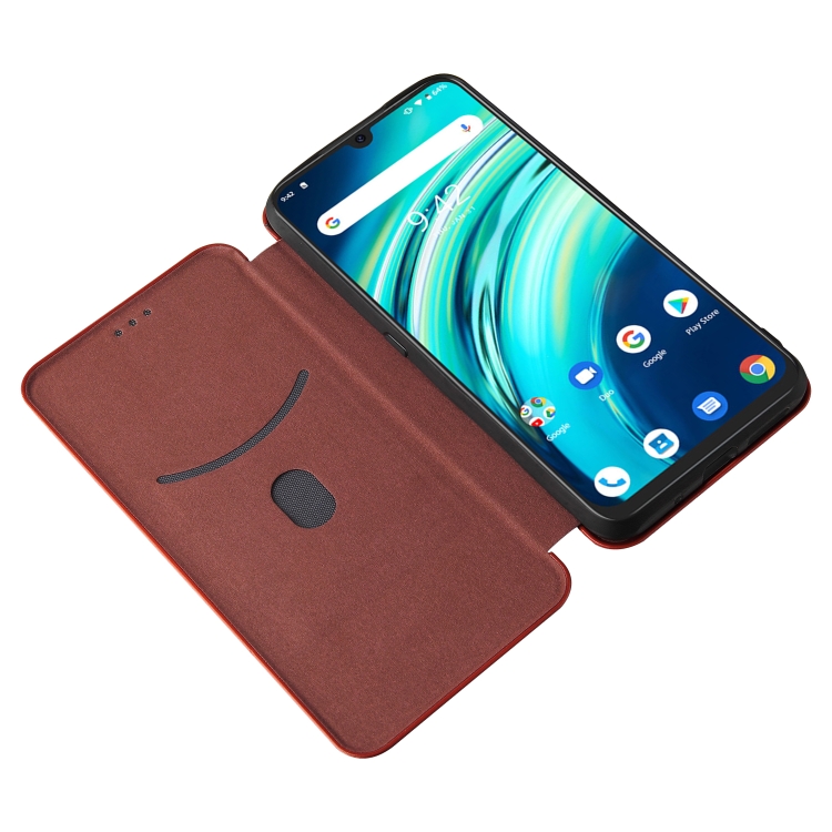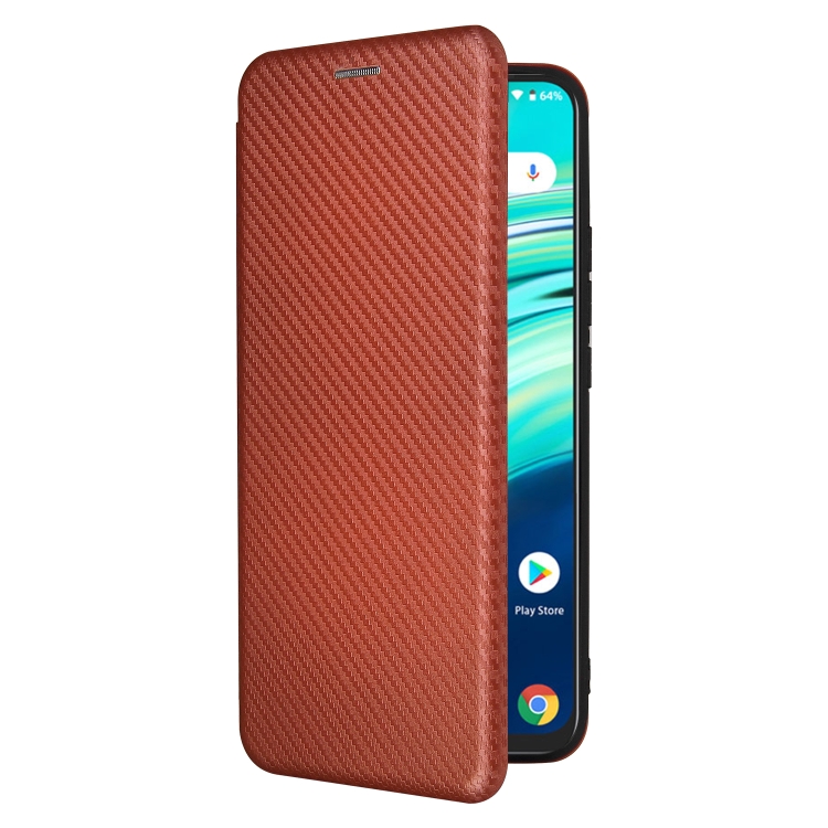 Funda para Umidigi A9 Textura Fibra de Carbono Magnética Horizontal TPU + PC Cuero PU con Ranura para Tarjeta (Marrón)