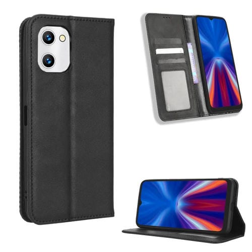 Funda para teléfono Umidigi C2 / C1 / C1 Max cuero textura retro hebilla magnética (Negro)