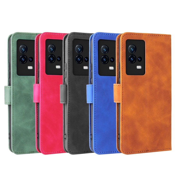 Para Vivo Iqoo 8 Color Solida Siente la Piel Hebilla Magnética Caja de Cuero de la Textura de la Textura de la Pu con El Soporte y Las Tragamonedas y la Cartera (Negro)