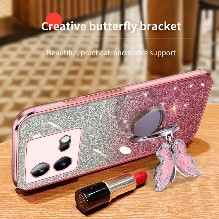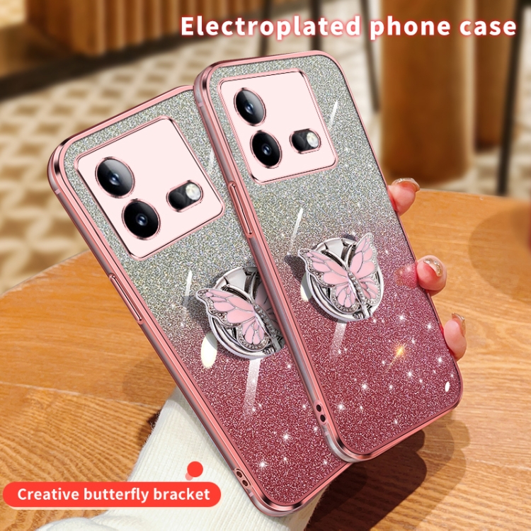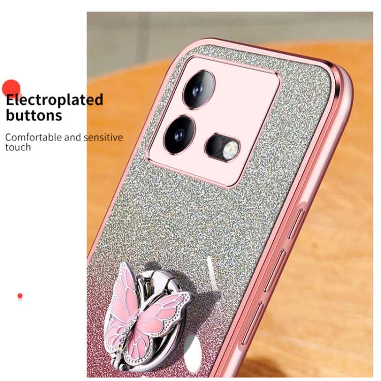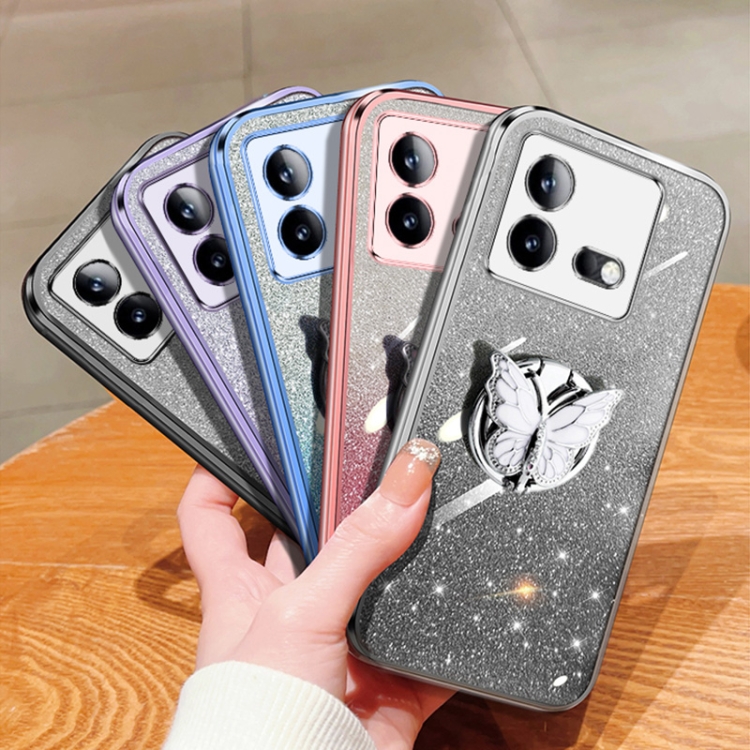 Para Vivo Iqoo Neo8 Funda para Teléfono de TPU con Soporte de Mariposa con Brillo Degradado Plateado (Negro)