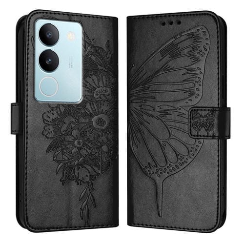 Para Vivo V29 5G Global / V29 Pro Funda de Cuero para Teléfono con Mariposa En Relieve (Negro)