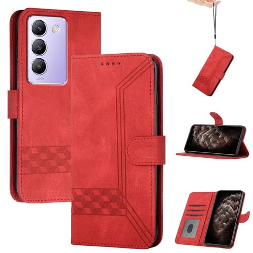 Para Vivo V30 Lite 5G India / T3 5G Idn Cubic Skin Feel Funda de Cuero con Tapa para Teléfono (Rojo)
