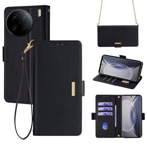 Para Vivo X90 Pro Funda de Cuero para Teléfono con Cadena Cruzada (Negro)