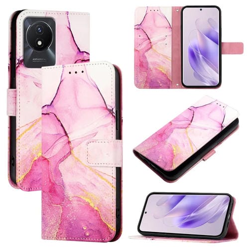 Para Vivo Y02A / Y02 / Y11 2023 / Y02T Pt003 Funda para Teléfono de Cuero con Tapa con Patrón de Mármol (Rosa, Morado y Dorado)