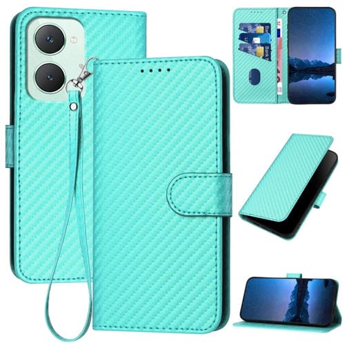 Para Vivo Y03 4G Yx0070 Funda de Cuero con Hebilla de Fibra de Carbono y Cordón (Azul Claro)