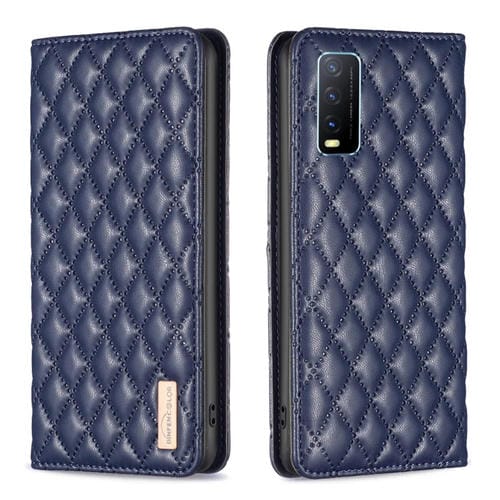 Para Vivo Y20 Diamond Lattice Funda de Teléfono con Tapa de Cuero Magnético (Azul)