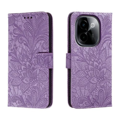 Para Vivo Y200 5G Funda para Teléfono de Cuero con Tapa y Estampado de Flores de Encaje (Púrpura)