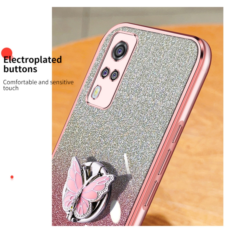 Para Vivo Y51 2021 Estuche para Teléfono de TPU con Soporte de Mariposa con Brillo Degradado Plateado (Plata)