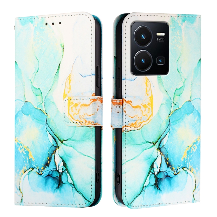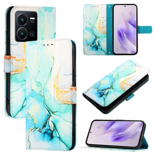 Para Vivo Y77 5G Global / Y77E 5G Pt003 Funda de Cuero con Tapa con Patrón de Mármol (Verde)