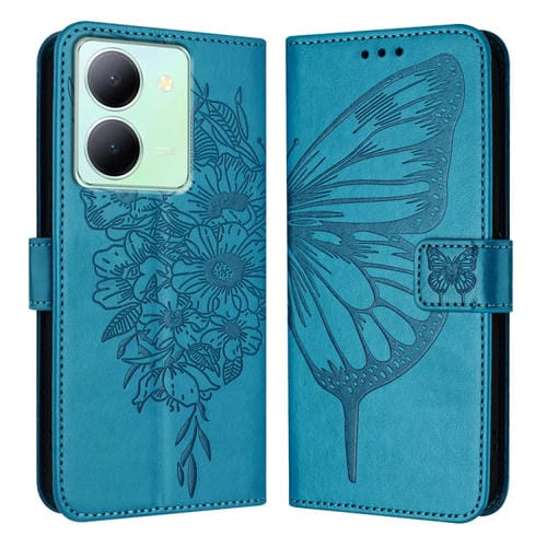 Para Vivo Y78 5G/Y78+ 5G Global/V29 Lite Funda para Teléfono de Cuero con Mariposa En Relieve (Azul)