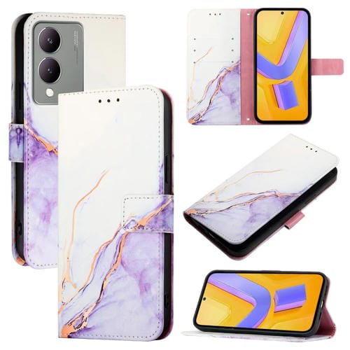 Para Vivoy Y17S 4G Global / Y17S 5G India Pt003 Funda de Cuero con Tapa con Patrón de Mármol (Blanco Púrpura)